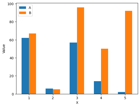 A slightly more advanced plot has categories in the X axis. The example borrowed from the official documentation.